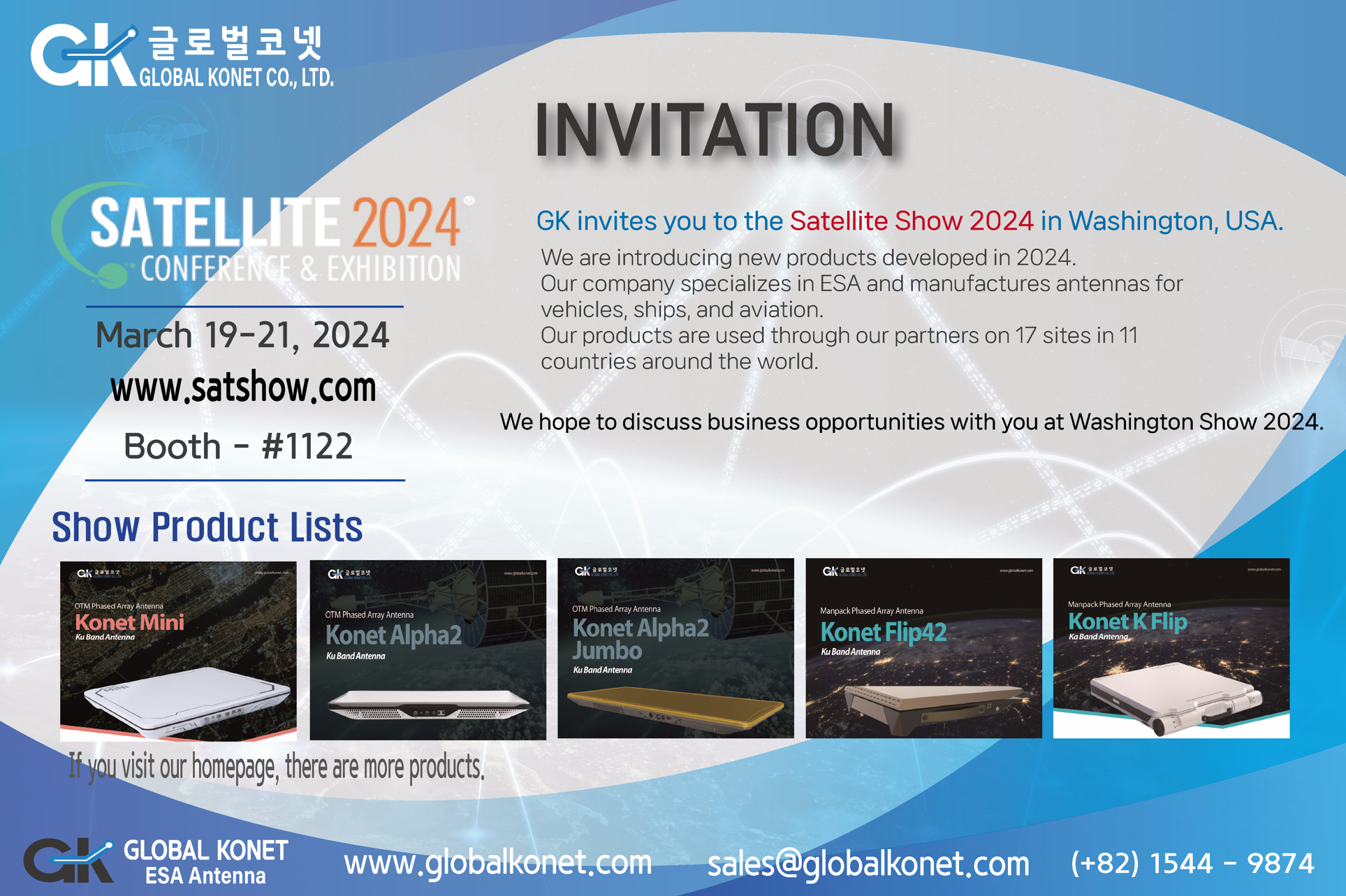 We are currently holding an exhibition event at booth #1122 at the Washington Satellite Show 2024.